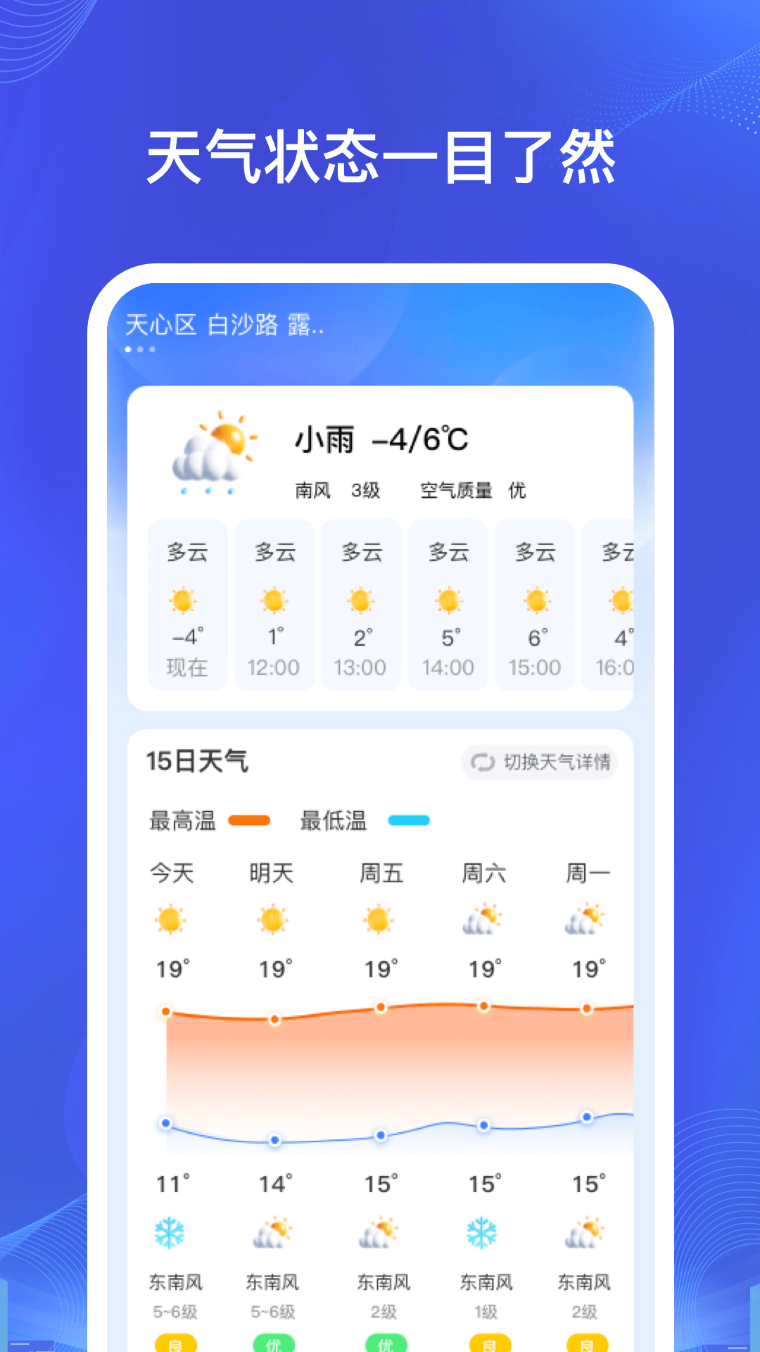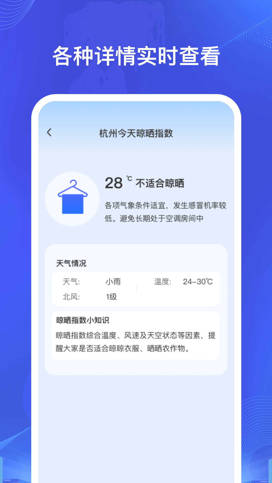 本应用提供当前温度、湿度与空气指数显示。支持未来15天及40天的天气预报查询。包含穿衣指南、生活指数等实用信息。同时提供相关气象科普知识。